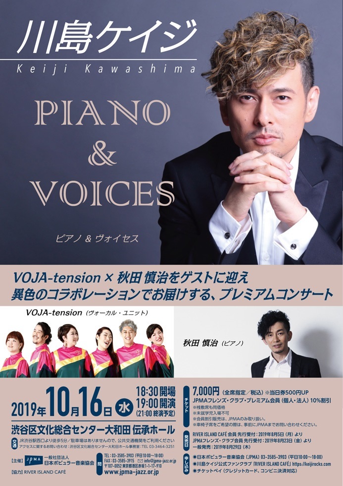 和歌山でライブの仕事があった時に、僕を応援してくれている人がいて、その方が秋田慎治さんを10年くらい応援されていて、それがご縁で、和歌山で一緒にコラボができたらいいね、って言っていたのですが、中々実現しなくて、昨年、富岡製糸場で世界遺産登録記念コンサートがあって、その時に初めて共演しました。そのご縁もあり、今回秋田さんのピアノで自分のボーカルがどんな風に化学反応を起こすのかなというのが楽しみですね。VOJA-tensionさんは湯川れい子先生の年末のクリスマスパーティでご一緒したご縁で今回ご出演いただくことになりました。