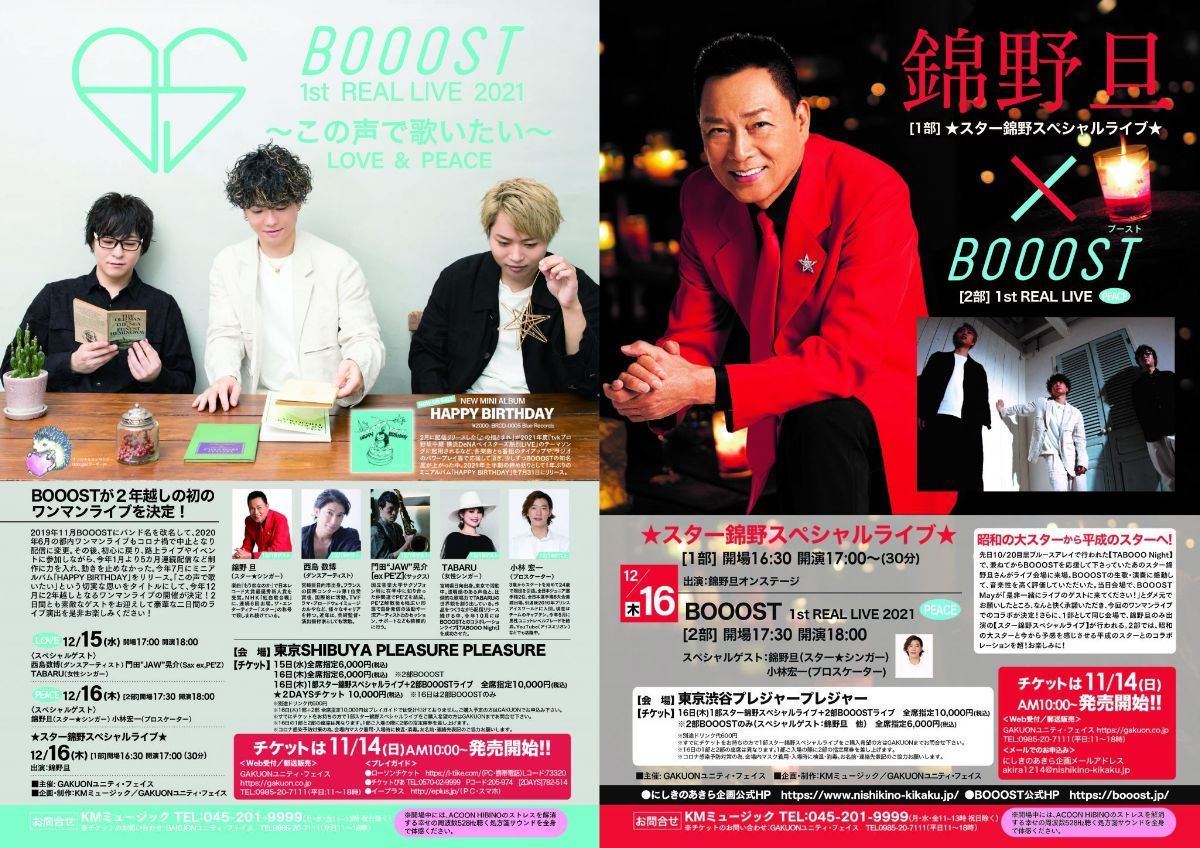 2015年仮面ライダードライブの挿入歌オーディションでバンドを結成。2019年11月バンド名を「Breathing Booost」から「BOOOST」に改名、SNSにも活動の幅を広げLINE LIVEで、“LINE LIVE Presents LIVER AWARD2018・2019”にて2年連続ナンバーワンに輝き、LINE LIVEの企画でレディー・ガガとの共演や映画「糸」の菅田将暉×小松菜奈×亀田誠治審査員によるカラオケオーディションでグランプリを獲得。2020年1月「愛されたい愛されたい」MV再生回数100万回を超え、LINE MUSICリアルタイム1位も獲得。2021年8月には世界最高峰のアイススケートショー「プリンスアイスワールド2021大分公演」のゲストアーティストとして出演。安藤美姫との夢のコラボでyoutube で話題となる。