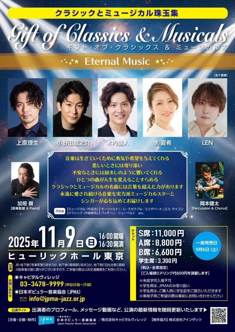 | 2025年11月2日 | 《Gift of Classics & Musicals 〜 Eternal Music 〜》全席完売いたしました。詳しくは[こちら] |