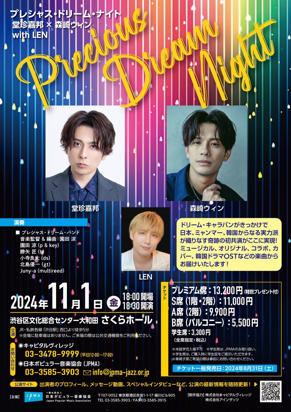 | 2024年11月2日【NEW】 | 【御礼】11月1日(金)、満場のお客様をお迎えし、《Precious Dream Night》を盛大に開催することができました。コンサートの実現にご協力いただきました出演者・関係者に御礼を申し上げます。そして、ご来場いただきました沢山のお客様に心より感謝を申し上げます。 |