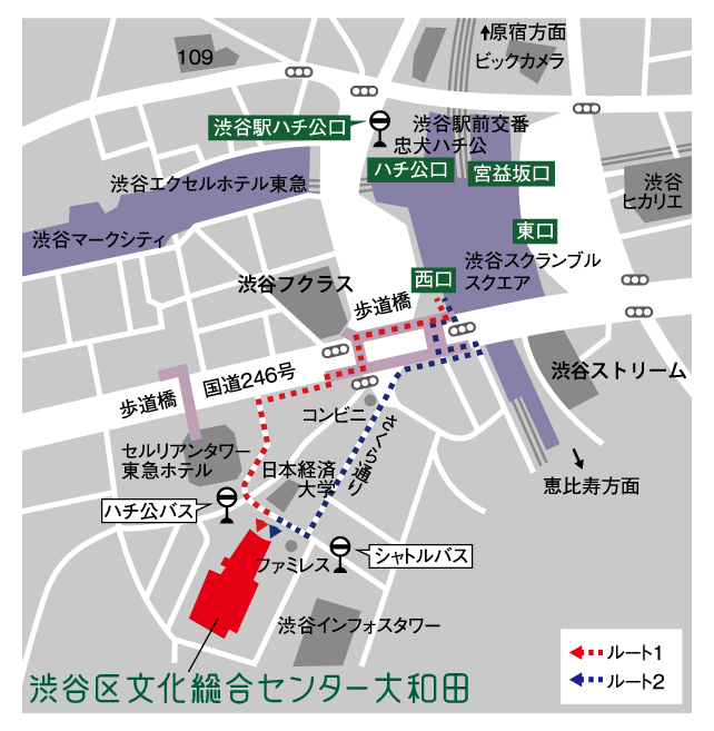 渋谷区文化総合センター大和田 さくらホール[交通アクセス] 東京都渋谷区桜丘町23-21(JR・私鉄各線「渋谷駅」西口より徒歩5分) ※会場に駐車場はありません。ご来場の際は公共交通機関をご利用ください。 |