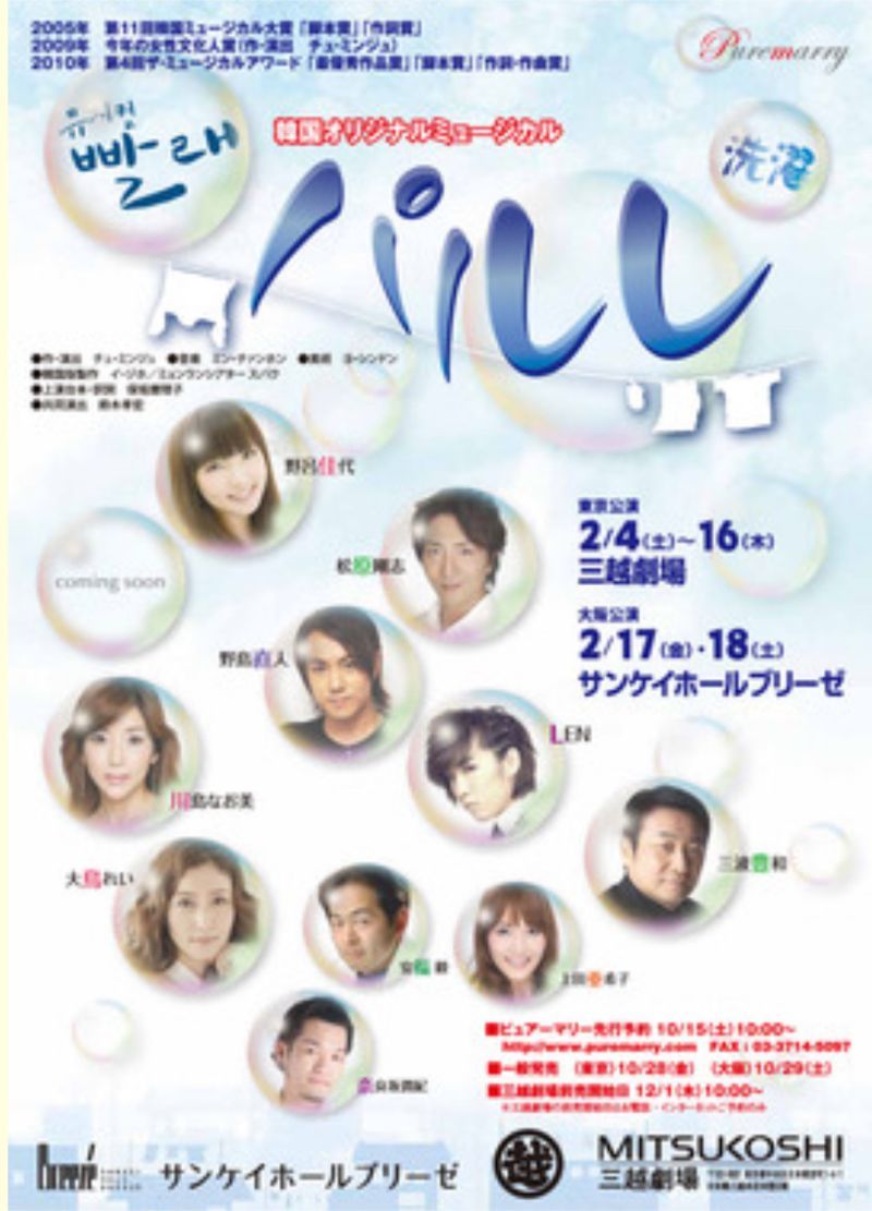 2月に東京、大阪で『パルレ』というミュージカルに出演しました。韓国発のミュージカルで、日本に輸出された作品です。台詞はみんな日本語だったのでとても大変でしたが、得難い経験になりました。