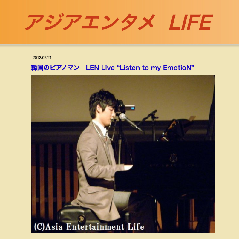 「LEN」という名前の歌手は多い。ポータルサイトの人物情報にはなんと4人も同名の歌手が存在する。そのためだろうか、LENは「ピアノを弾く歌手LEN」と表記してほしいと望んだ。彼はピアノを独学で習得した。12歳の時から作詞、作曲を始めて約400曲を作ったシンガーソングライターは彼が唯一ではなかろうか。