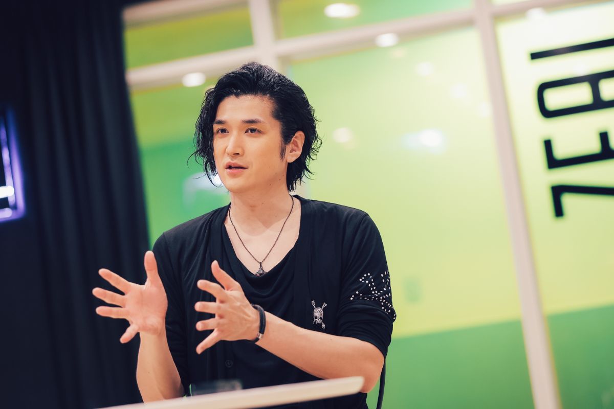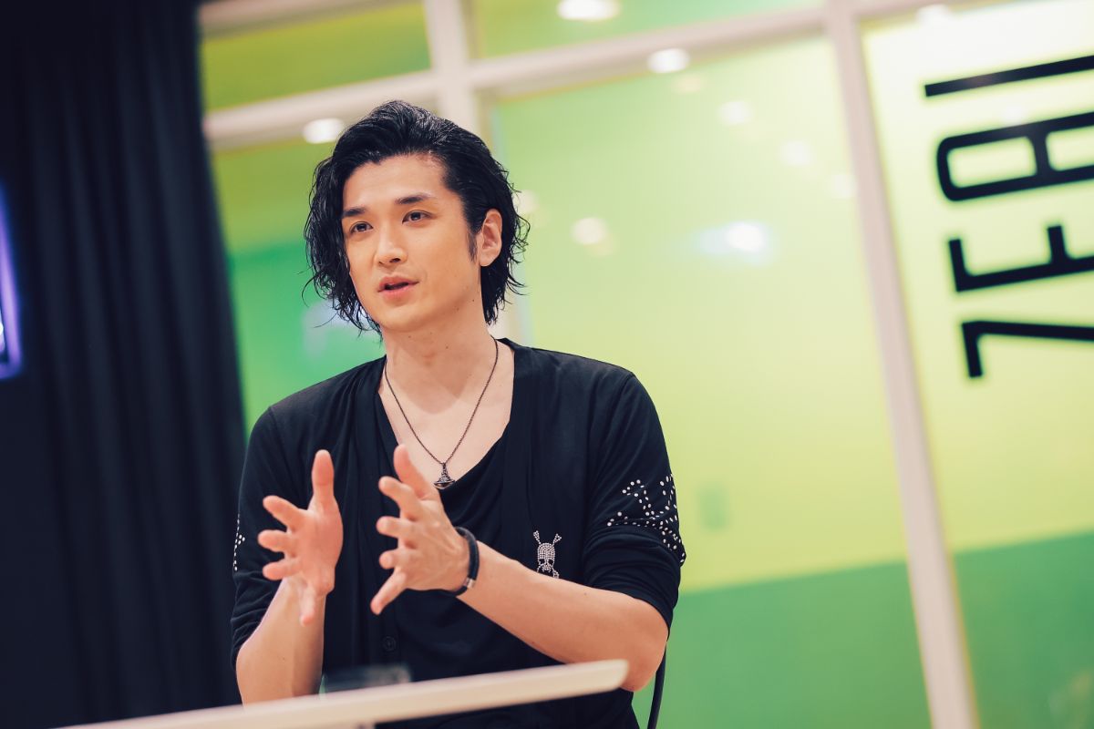 コロナ禍で皆さんと一緒に稽古をする時間が殆ど取れなくて、キャストの皆さんと会えるのは最後の通し稽古くらいでした。振り付け家と音楽のスーパーバイザーのかたはブロードウェイから来日されて練習しました。演出家とはイギリスからリモートで練習したり、時差があるので、日本に合わせてくださって、僕たちが11時くらいから練習を始めるとイギリスは夜中の3時とかなんですね、練習しているとあちらの風景が夜明けになってくるんです。みんなで「good morning!」と言って、それがリアルタイムで美しくて、こんなことはかつてなかったので、練習も大変でしたが思い出に残る作品でもありますね。